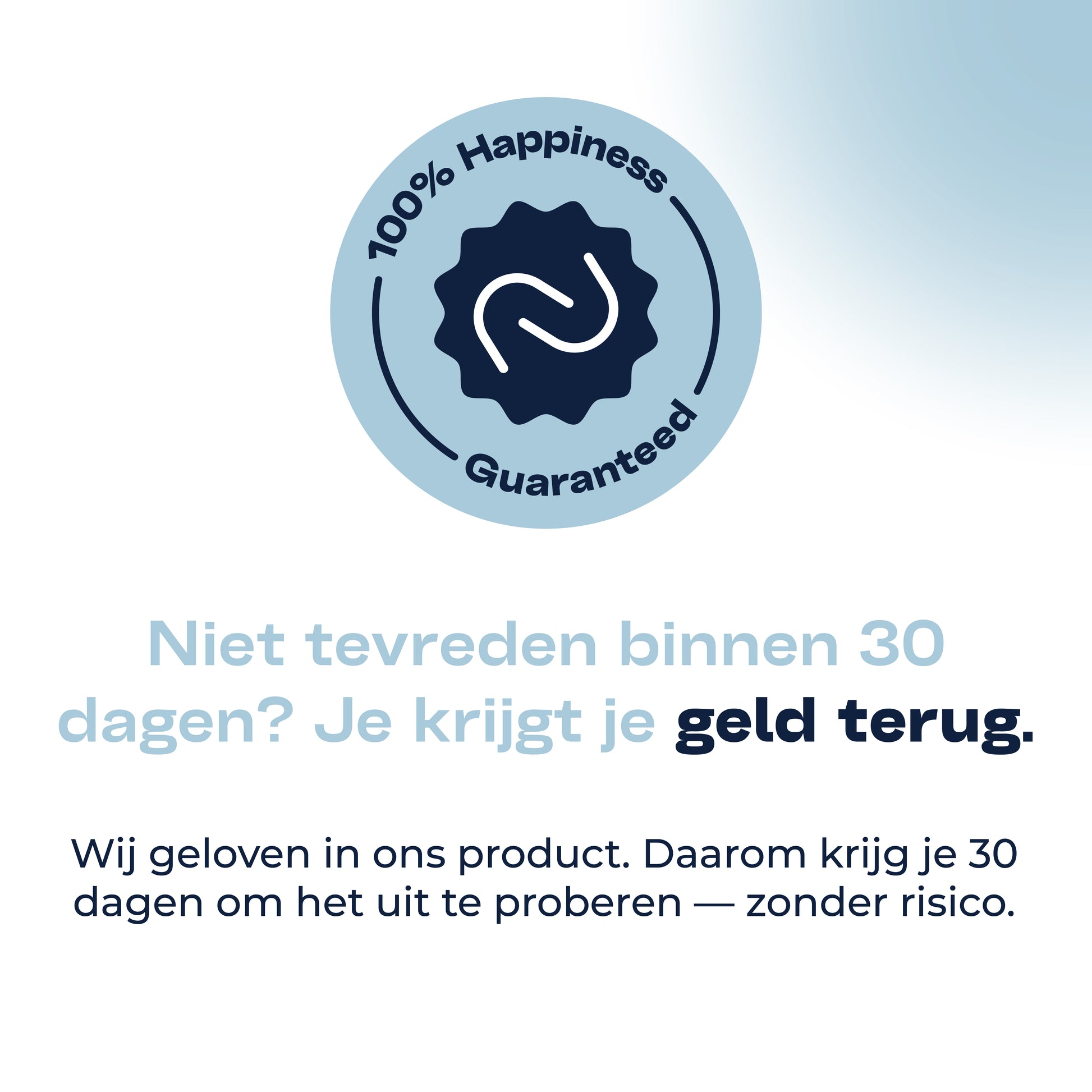 Als je om welke reden dan ook niet volledig tevreden bent, ontvang je een volledige terugbetaling van je aankoopbedrag.